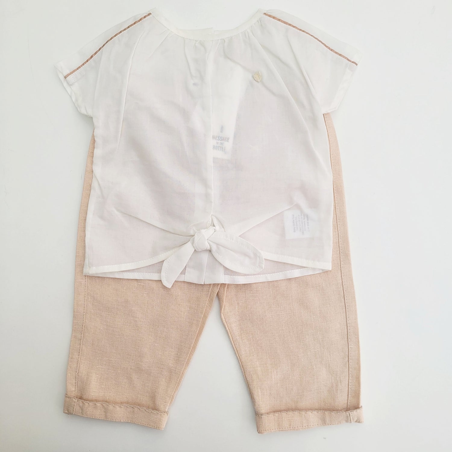 Conjunto de camisa de voile de algodón con detalle en el hombro y lacito en el delantero