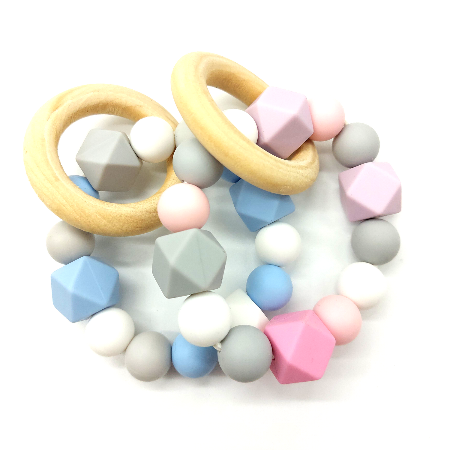 Mordedor con piezas de silicona, con agarrador de madera pulida